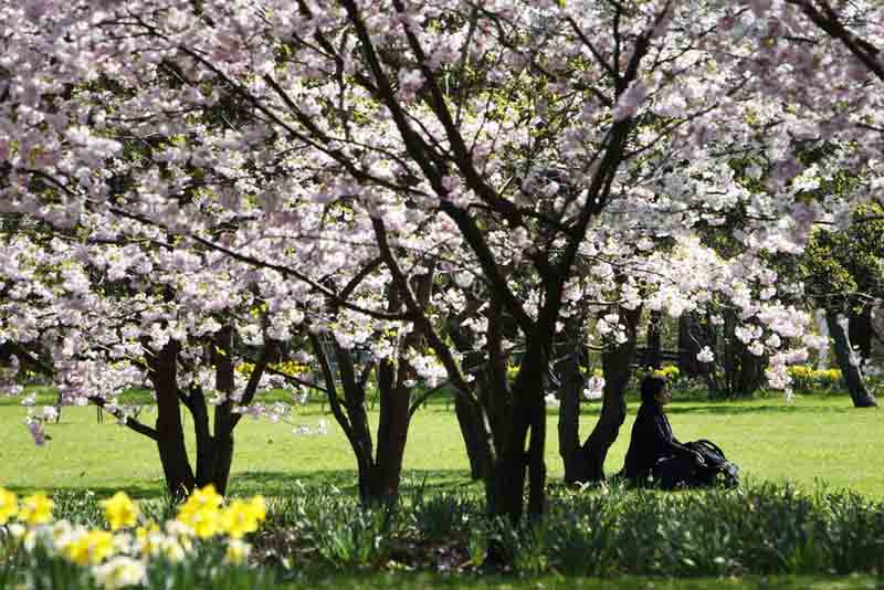 Khoảng năm, sáu năm trở lại đây, cứ trung tuần tháng tư, thời tiết vẫn còn se lạnh, hoa Anh Đào lại nở rực rỡ đến mê hồn trong khu vườn Nhật Bản thuộc khuôn viên Vườn hoa Thế giới, quận Marzahn, Berlin (CHLB Đức).