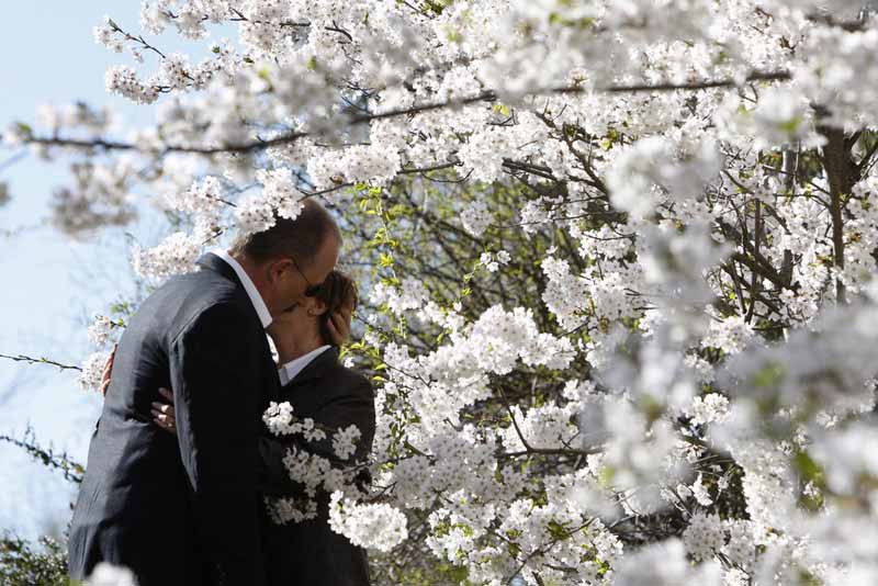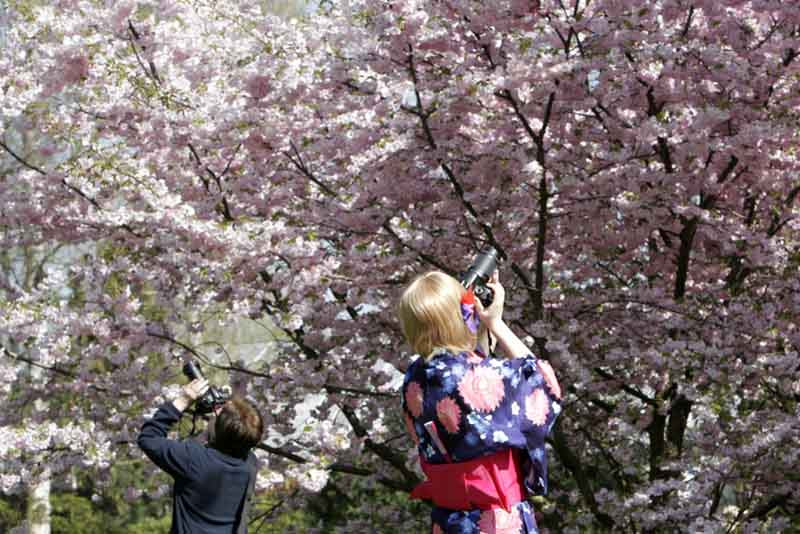 TPO - Mặc dù còn gần một tuần nữa mới đến ngày Lễ hội hoa Anh Đào, nhưng thời điểm này, hàng ngàn du khách đổ về Vườn hoa thế giới ở Berlin (CHLB Đức) ngắm, chụp ảnh bên hoa, làm phim về hoa... Họ còn trao những nụ hôn nồng nàn lên cánh hoa đầy quyến rũ.