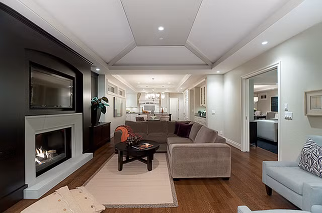 Trần nhà và tường tạo cho căn phòng vẻ sang trọng.
