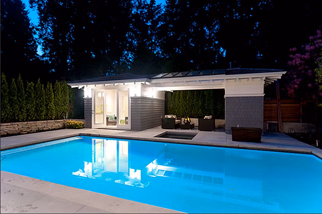 Ngôi nhà có một bể bơi tráng lệ ngay phía trước phòng khách và Cabana (một nhà nhỏ) có bộ đồ gỗ, lò sưởi ngay sát bể bơi. Đây chính là điểm tạo nên giá trị của ngôi nhà.