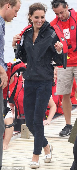 Thời trang và thời tiết được công nương kết hợp khá nhuần nhuyễn. Trong lễ hội đua thuyền rồng, công nương diện chiếc quần jean hiệu J Beand và chiếc áo khoác mũ của Nike để tránh gió.