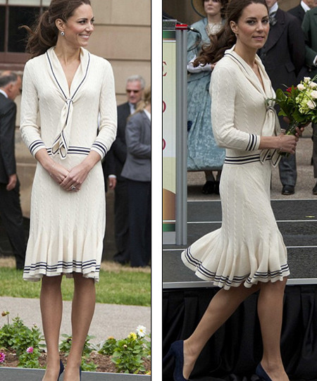 Trong chuyến thăm chính phủ Canada, công nương chọn phong cách đứng đắn với váy do một nhà thiết kế người Canada tên Erden may, và giày LK Bennett.