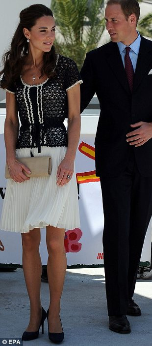 Váy mang nhãn hiệu Alexander McQueen được công nương kết hợp với giày da cao gót Prada.