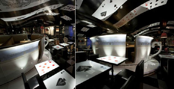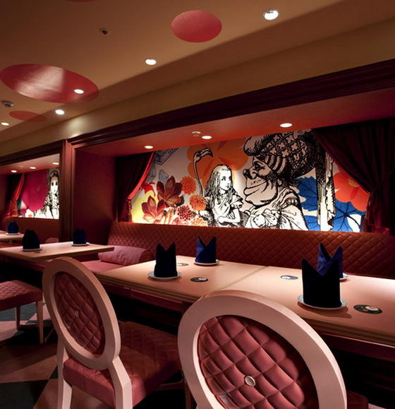 Nhà hàng này đưa vào những hoạt cảnh có trong bộ phim hoạt hình ra đời từ năm 1951, ngay cả nhiên viên của nhà hàng cũng hóa trang thành những nàng Alice.
