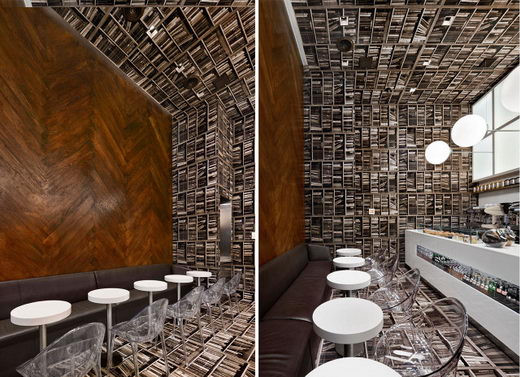 Ý tưởng thiết kế quán cà phê này là không gian của thư viện nhưng được đảo ngược lại, rất ấn tượng. Không chỉ tạo một không gian nghệ thuật mà ý tưởng thiết kế này còn mang lại thành công trong kinh doanh.