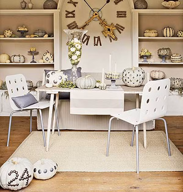 Những chiếc gối màu cam và màu đen là một ý tưởng hay để mang lại không khí Halloween. Bạn sở hữu một ngôi nhà sang trọng và hiện đại vì vậy mà bạn không muốn trang trí quá nhiều. Vậy thì những chiếc gối xinh đẹp như thế này có thể sử dụng như là điểm nhấn trong căn nhà của bạn mùa Halloween này.