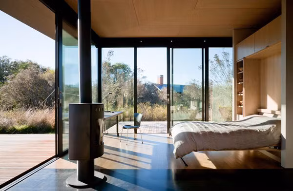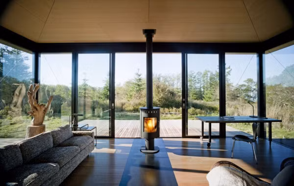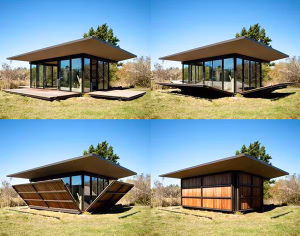 Ngôi nhà với thiết kế độc đáo này nằm trên hòn đảo Juan thuộc tiểu bang Washington, Mỹ - một ngôi nhà xinh xắn đầy đủ tiện nghi với những bức tường có chức năng vô cùng đặc biệt – tường gỗ tạo một không gian riêng tư cho ngôi nhà, khi tường gỗ hạ xuống sẽ có tường kính tạo một không gian mở, thư thái hòa nhập với thiên nhiên xung quanh.