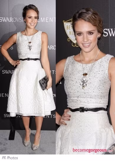 Chiếc váy ren Swarovski cùng đôi đôi giày trong bộ sưu tập Cruise 2012 giúp Jessica Alba trở nên xinh đẹp hơn hẳn.