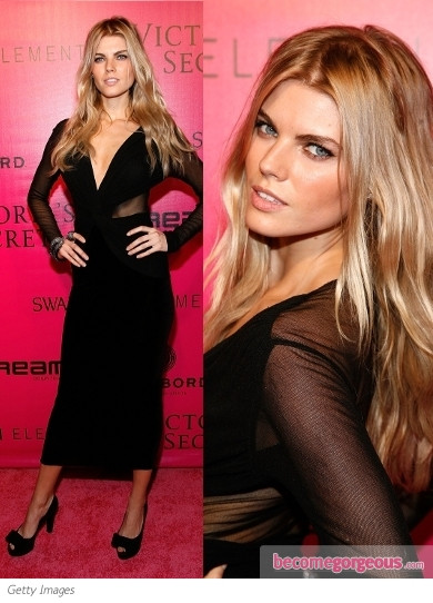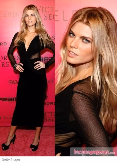 Thiên thần Lily Aldridge diện bộ đầm satin màu đen với đường ren ở phần ngực.