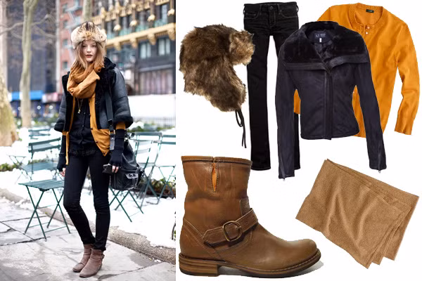 Ngoài ra, bạn có thể kết hợp cùng mũ lông và khăn choàng cùng màu. Bạn có thể áp dụng phong cách layer cùng kiểu boot này.