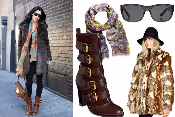 Áo choàng lông thú, khăn quàng cổ và túi xách theo phong cách bolemia hợp với những cô nàng sôi nổi, hóm hỉnh, ưa mạo hiểm và khám phá.