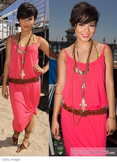 Với chiều cao khiêm tốn, bạn hoàn toàn có thể chọn cho mình kiểu váy liền ôm sát giống như Vanessa Hudgens để che đi khuyết điểm “nấm lùn” của mình trong những bữa tiệc sinh nhật hay đi dạo phố nữa đấy.