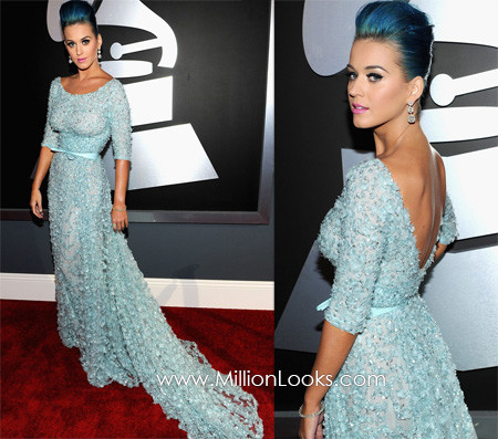 Katy Perry lộng lẫy trong chiếc váy sequin màu xanh của thương hiệu Elie Saab.