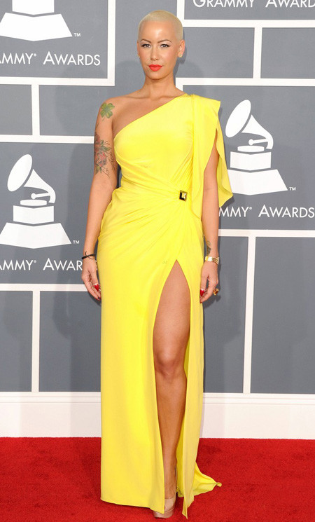 Amber Rose trông khá giản dị trong chiếc váy màu vàng này của Versace.