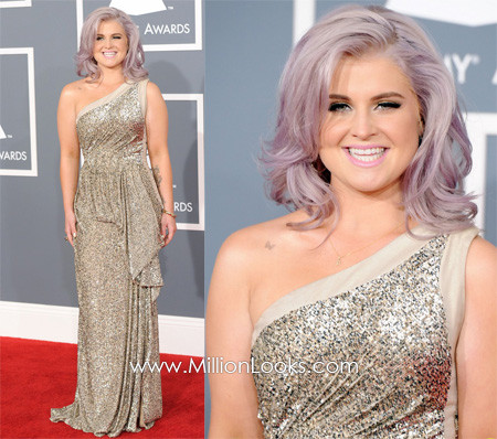 Kelly Osbourne có mái tóc màu bạc rất hợp với chiếc váy sequin của thương hiệu Tony Ward.