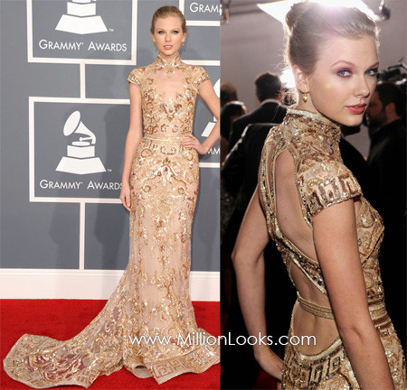 Công chúa nhạc đồng quê Taylor Swift chọn cho mình chiếc đầm hở lưng của thương hiệu Zuhair Murad.