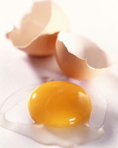 Gội tóc sạch, để còn ẩm. Tách một lòng đỏ trứng gà trộn với một thìa dầu oliu + 1 thìa bột mì làm thành hỗn hợp sệt bôi đều lên tóc. Ủ tóc bằng khăn ấm hoặc mũ tắm trong vòng một tiếng rồi gội lại bằng nước sạch.