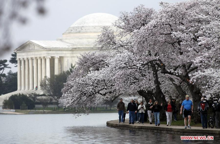 Thường thì khoảng đầu tháng tư mới là thời điểm anh đoa nở rộ tại thủ đô Washington DC, nhưng năm nay, do thời tiết ấm hơn nên ngay từ giữa tháng ba, người dân nơi đây và khách du lịch đã được ngắm nhìn sắc hoa trắng hồng đẹp lung linh trong gió.