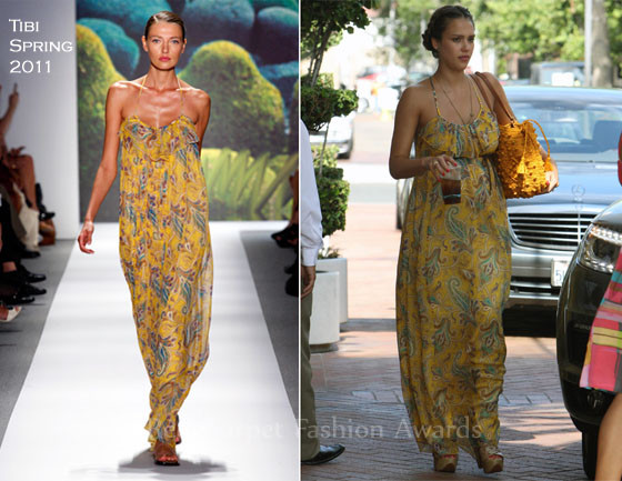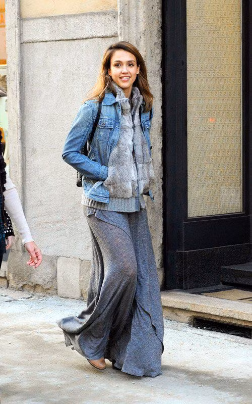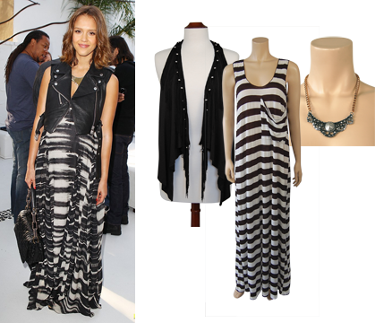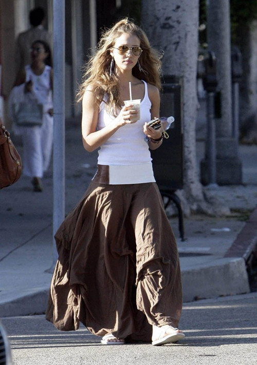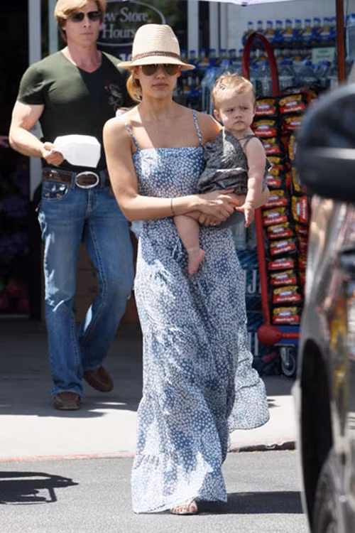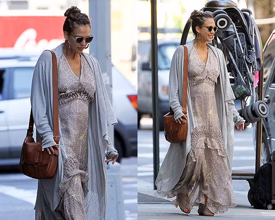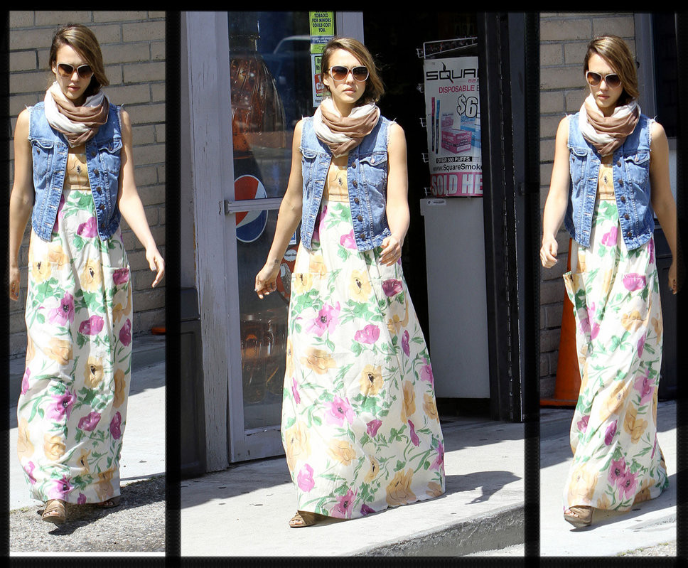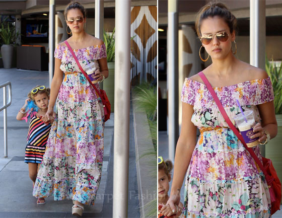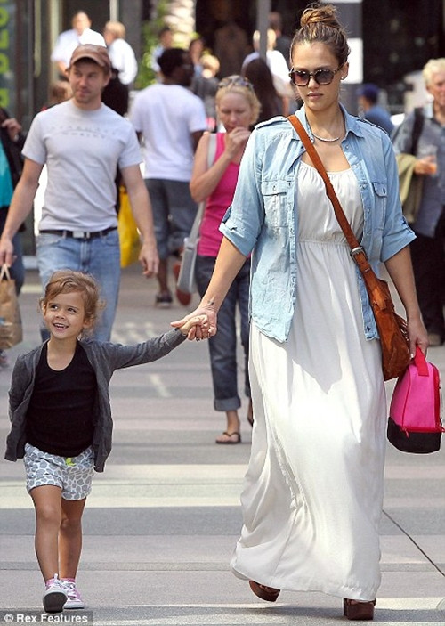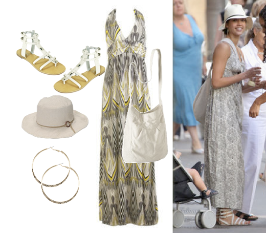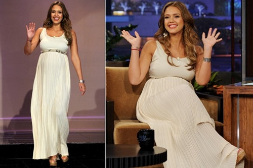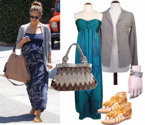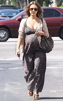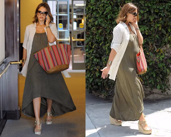 Style váy maxi được cô đặc biệt yêu thích khi mang bầu. Trong những bộ váy maxi tinh tế Jessica Alba khéo léo che cơ thể mũm mĩm của mình.