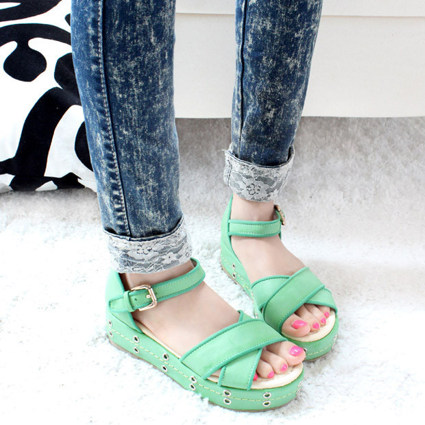 Với phần đế cao nhưng lại rất bằng, kiểu sandal này mang lại cảm giác thoải mái không khác gì giày bệt mà vẫn giúp ăn gian chiều cao cho người mặc chứ không hề mất thăng bằng như những đôi giày cao gót chông chênh.