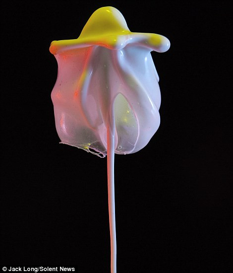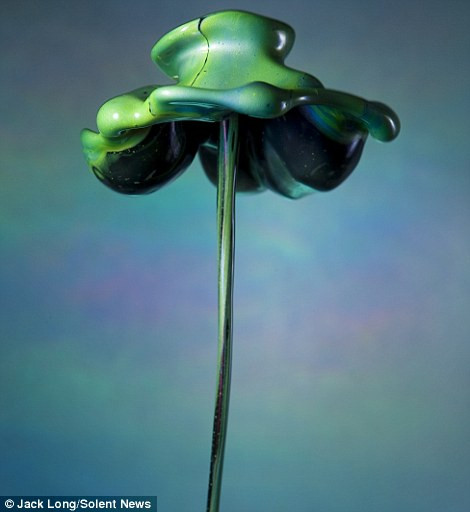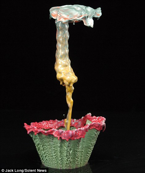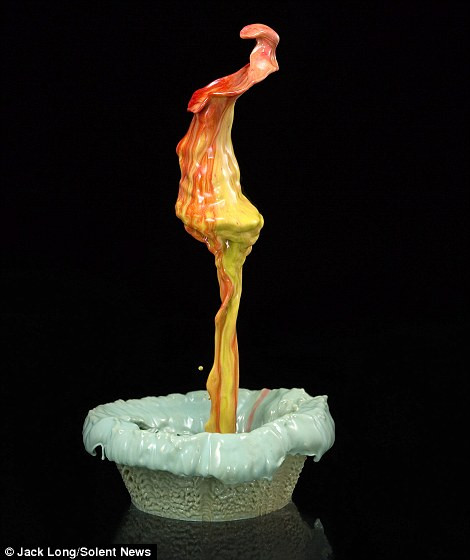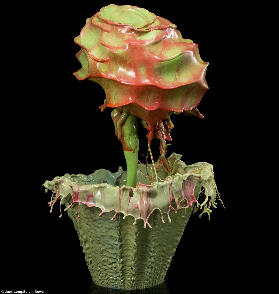 Nhiếp ảnh gia Jack Long, 53 tuổi, đến từ Mỹ, mất nhiều tháng trời mới có thể ghi lại được khoảnh khắc viên đá rơi vào thùng sơn và tạo nên một hình ảnh giống như những bông hoa đầy màu sắc.