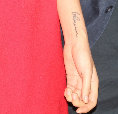 Và mới đây, người đẹp lại "khoe khéo" hình xăm mảng chữ đầy ấn tượng ở bả vai trái khi mặc chiếc váy khoét lưng quyến rũ.