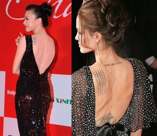 Hình xăm này của Ngô Thanh Vân có ý tưởng khá giống một trong những hình xăm của Angelina Jolie.