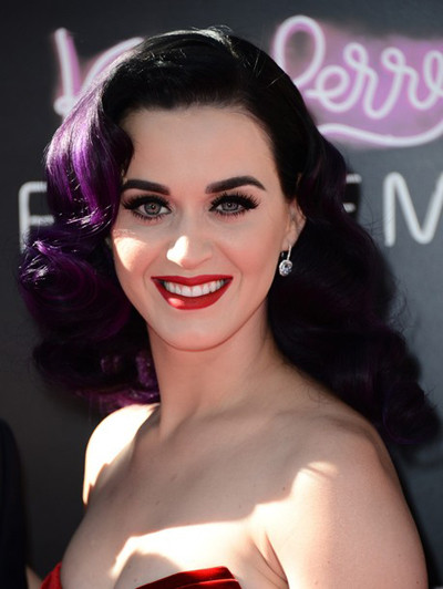 Chiếc váy nhung đỏ của thương hiệu D&G cùng mái tóc màu tím của Katy khiến cô ấy giống như một nàng công chúa xinh đẹp bước ra từ truyện tranh.
