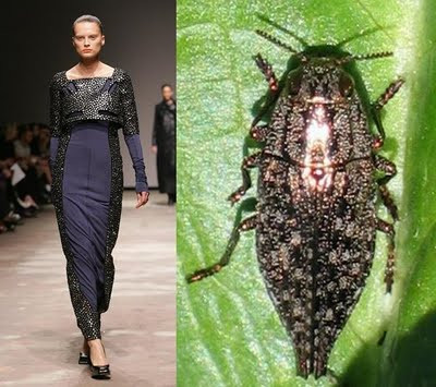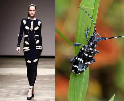 Hãy cùng ngắm nhìn những mẫu thiết kế dưới đây nhé. Bạn sẽ phải ngạc nhiên về độ giống nhau của những bộ trang phục và côn trùng đấy!