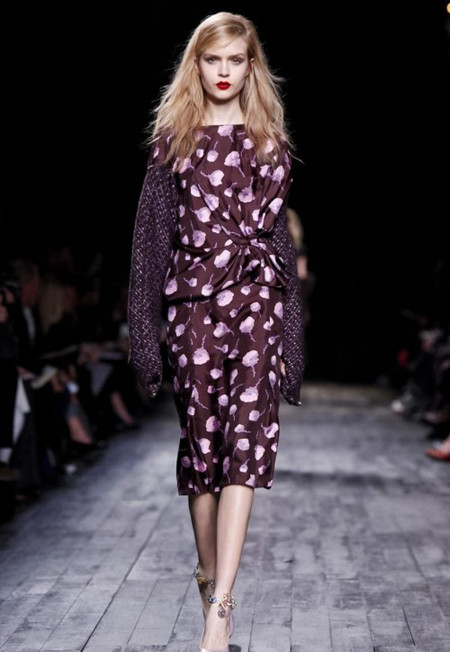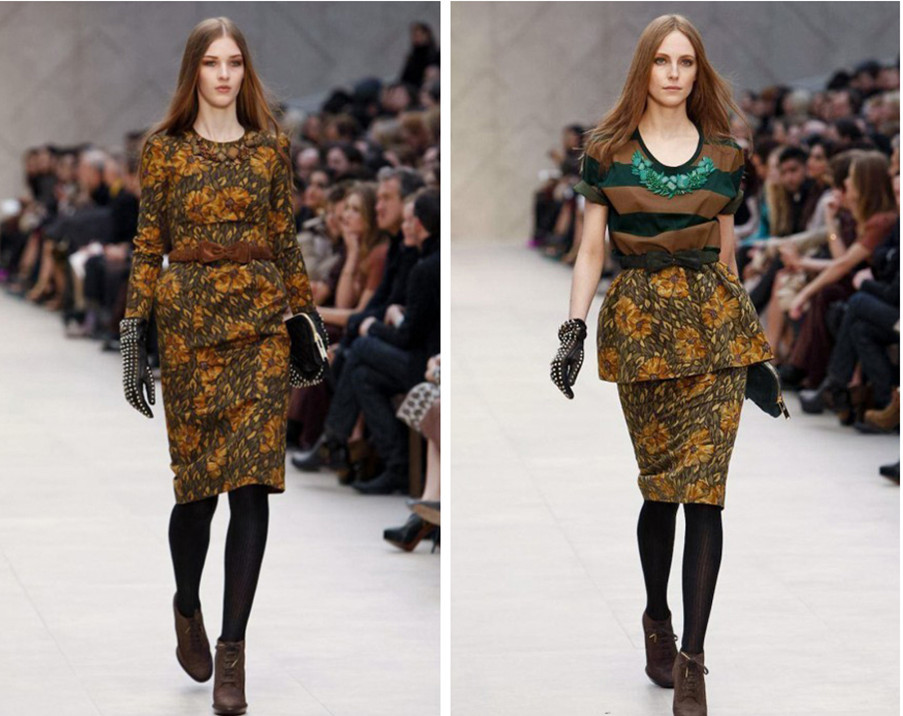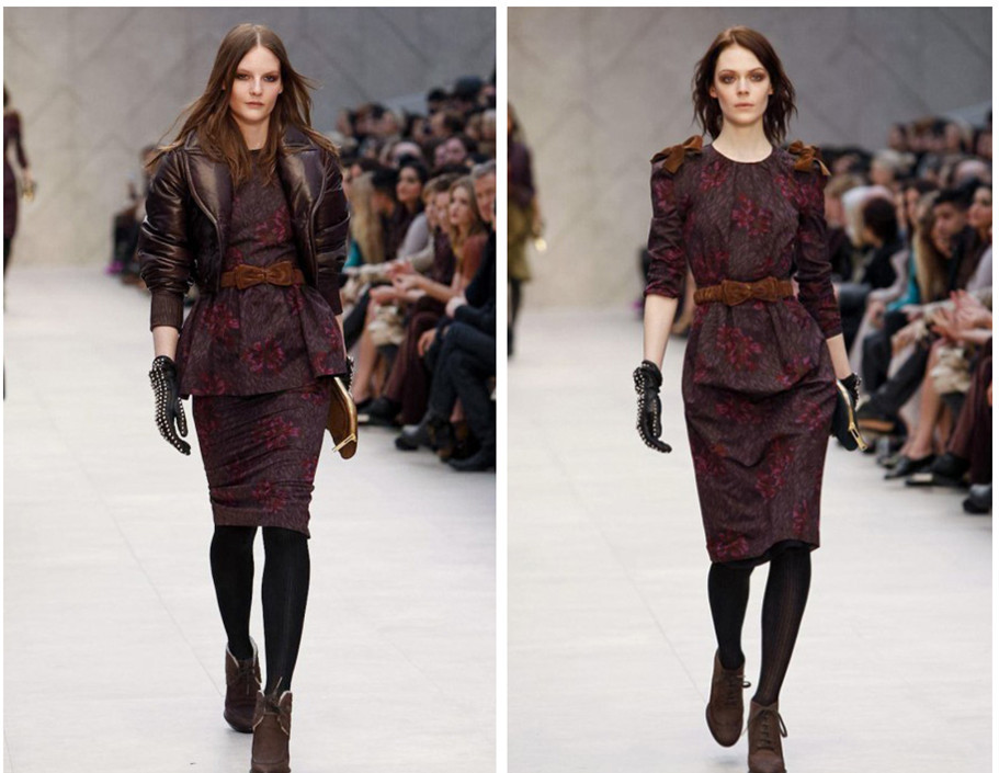 Burberry Prorsum lại đem đến cho các quý cô, quý bà những mẫu váy áo họa tiết in hoa cỏ đơn giản. Đây là những sáng tạo dành cho những ai yêu thích vẻ đẹp giản dị, và màu nâu xám sẽ làm thay đổi phong cách thời trang của bạn gái trong mùa thu đông này.
