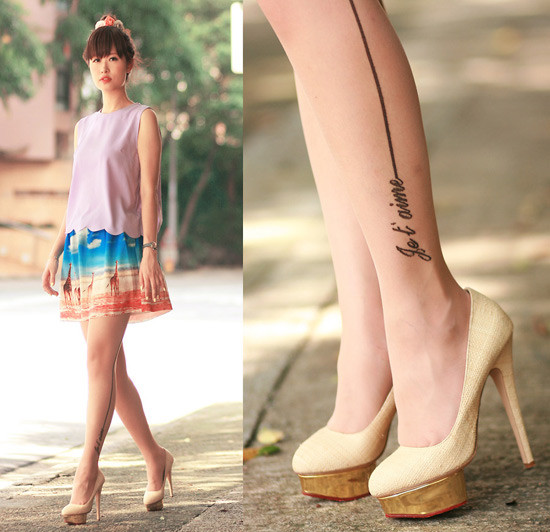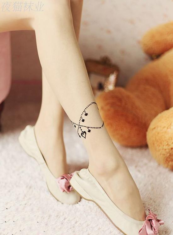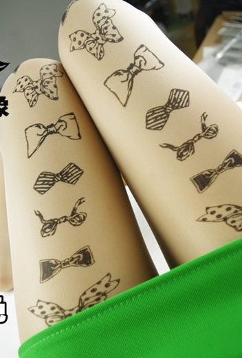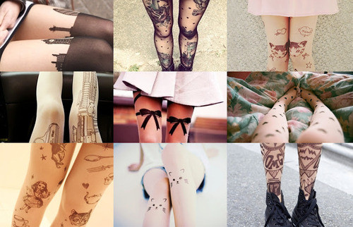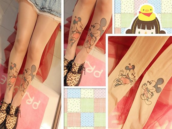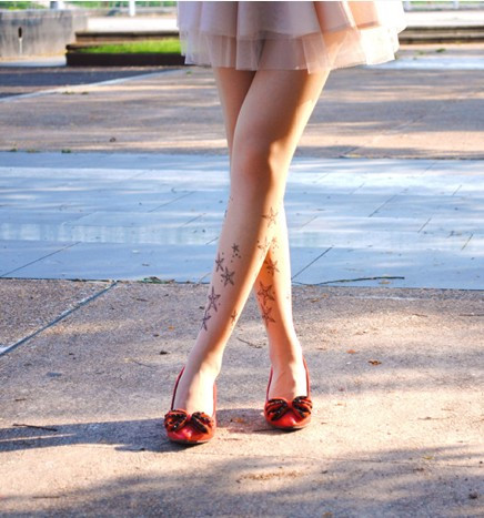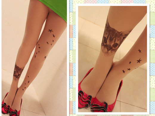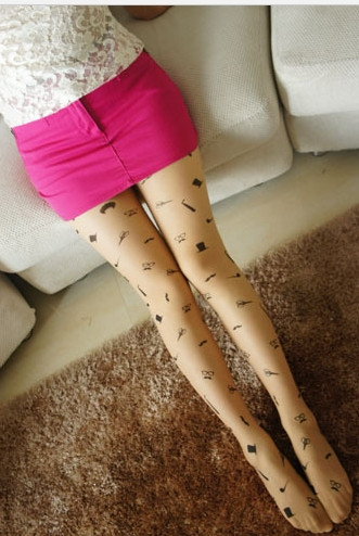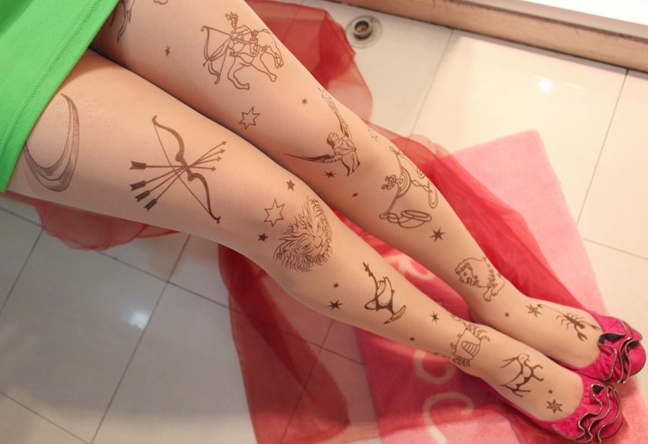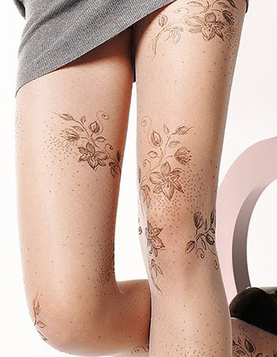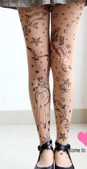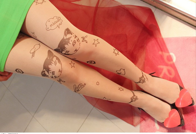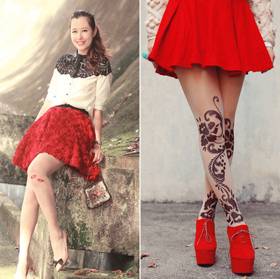 Họa tiết của những chiếc tất kiểu này rất phong phú. Đó có thể là những hình vẽ mảnh dẻ, đơn giản được in trên đầu gối, chạy dài mềm mại dọc chân hoặc vẽ kín đôi tất bằng những hoa văn xăm phổ biến mà đầy tính nghệ thuật.