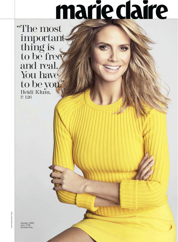 Siêu mẫu Đức Heidi Klum khoe thân hình "chuẩn không cần chỉnh" dù đã ngấp nghé tuổi 40 trên tạp chí Marie Claire (Mỹ) số tháng hai. Nụ cười rạng ngời, sáng bừng trên gương mặt cô người mẫu đa tài.
