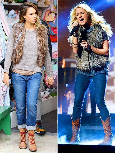 Áo khoác lông thường đem đến cho chúng ta cảm giác sang trọng quí phái tuy nhiên với kiểu diện chile lông giống như Jessica Alba và Carrie Underwood, bạn chắc chắn sẽ trở thành cô nàng cực ngầu và cá tính đấy.
