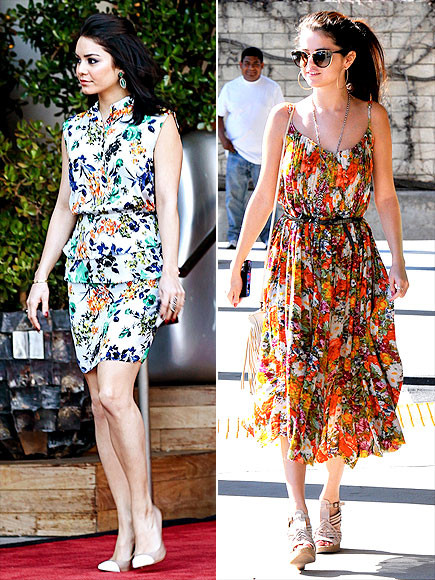 Mùa xuân năm nay là sự lên ngôi của họa tiết hoa bản to, màu trầm. Nếu như bạn cũng muốn mình dịu dàng nữ tính như Selena Gomez và Vanessa Hudgens thì hãy lựa chọn những chiếc váy hoa với họa tiết to bản thế này nhé.