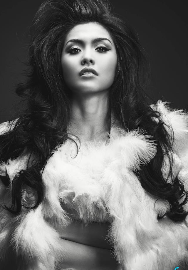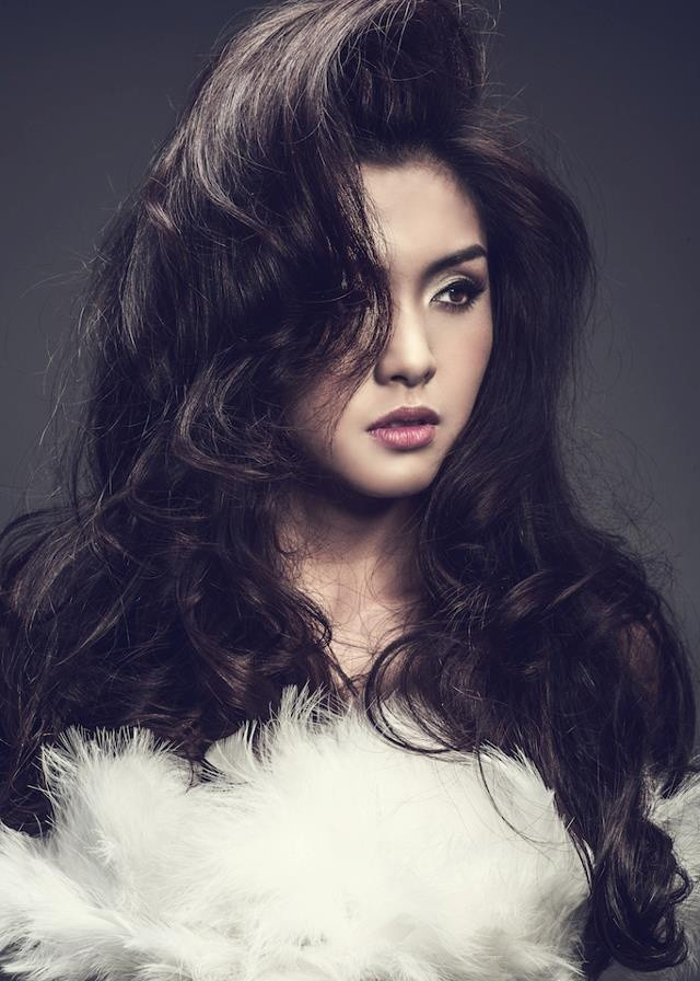 Sức quyến rũ của người đẹp họ Tăng được nhân lên gấp bội với phần tóc đánh bồng gợi cảm và độc đáo