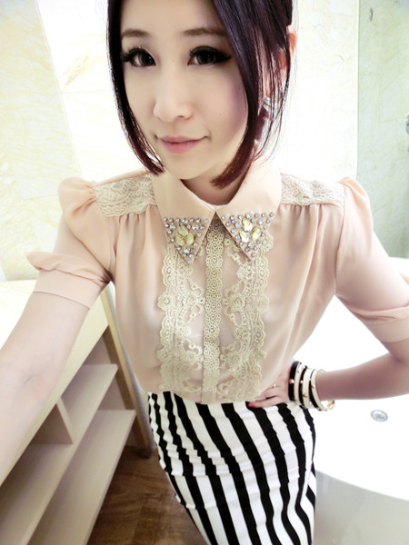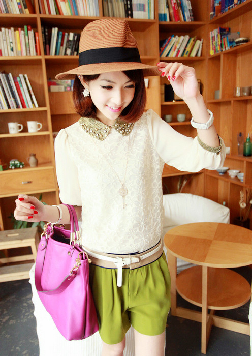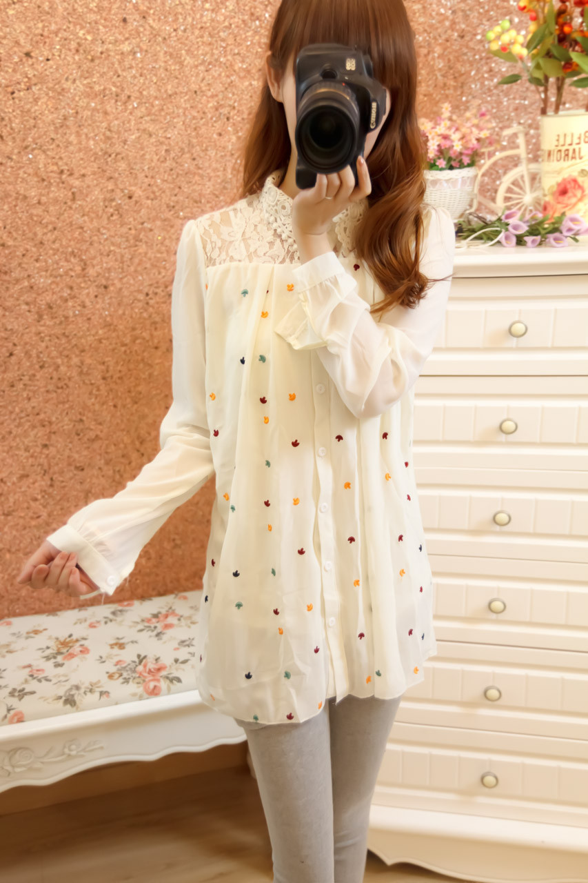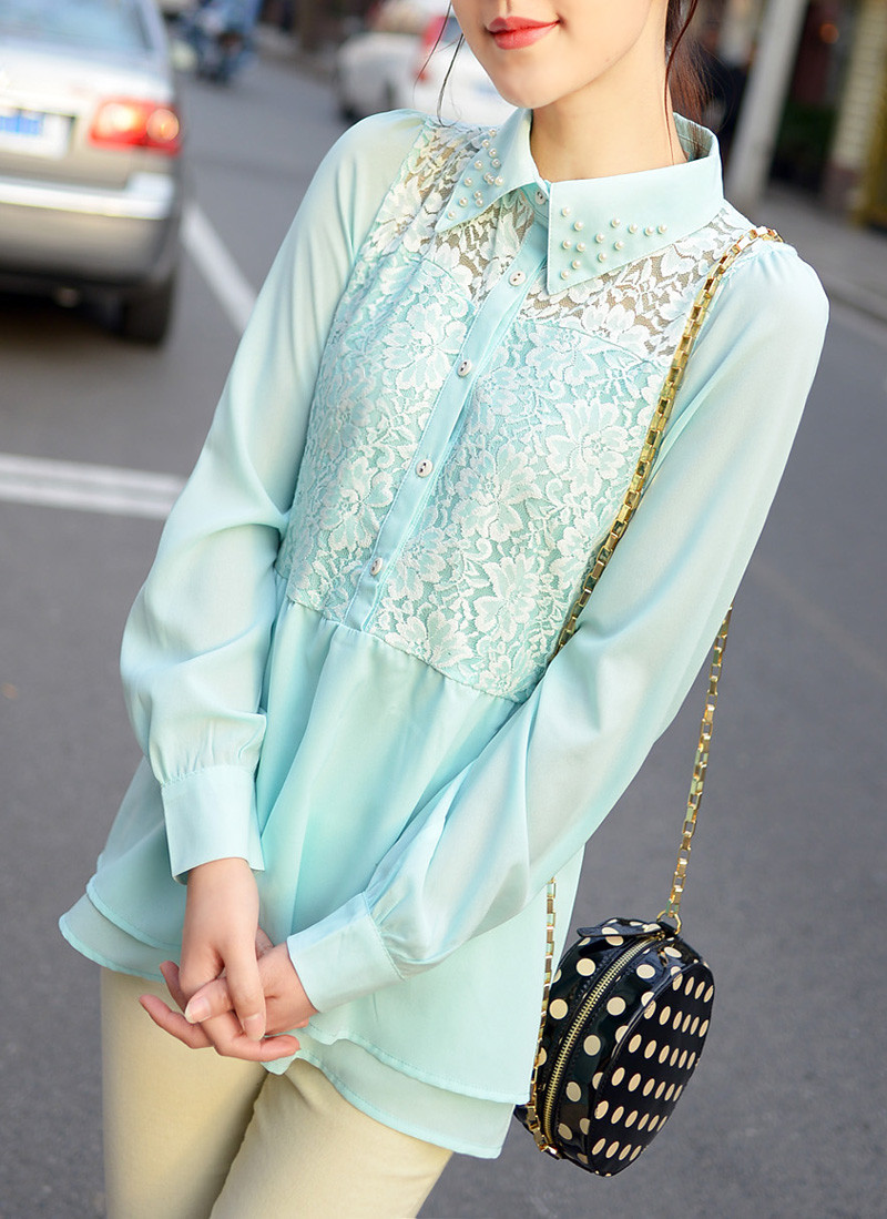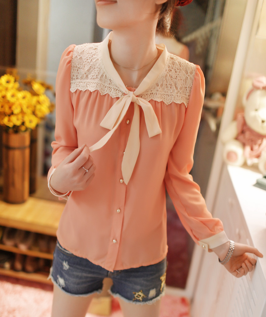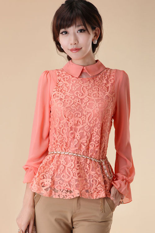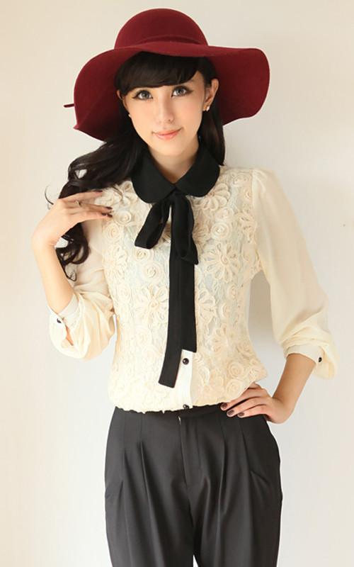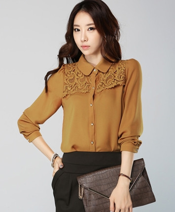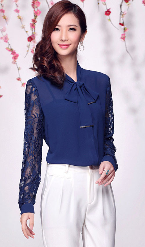 Với vẻ mềm mại, mỏng manh đặc trưng từ bao năm nay ren vẫn luôn là “bà hoàng” trong lãnh địa thời trang. Sự quyến rũ của ren kết hợp với nét thanh lịch quý phái của kiểu áo sơ mi sẽ thể hiện phong cách hiện đại, nữ tính của bạn gái.