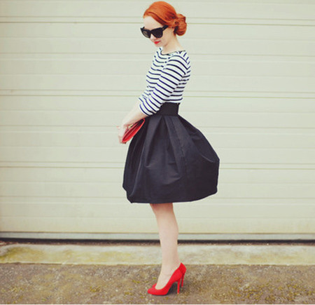 Không hề khó mặc như nhiều người tưởng, midi skirt vẫn phù hợp với những cô nàng có vóc dáng nhỏ nhắn và chiều cao trung bình. Công thức an toàn nhất dành cho midi skirt là: midi skirt + áo bó hoặc áo thụng sơ vin kèm giày đế xuồng hoặc cao gót xinh xắn.
