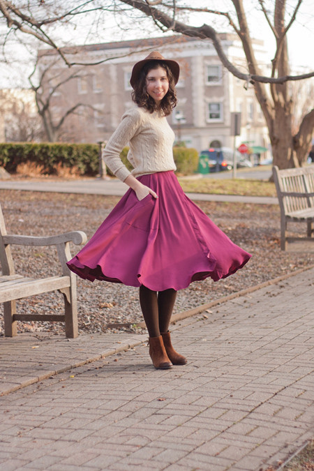 Váy midi cũng có ưu điểm giúp bạn che giấu chiếc đầu gối không được hoàn hảo hoặc bắp đùi to. Thời tiết se lạnh càng thích hợp cho bạn diện váy midi thay cho những chiếc váy ngắn khiến đôi chân run rẩy.