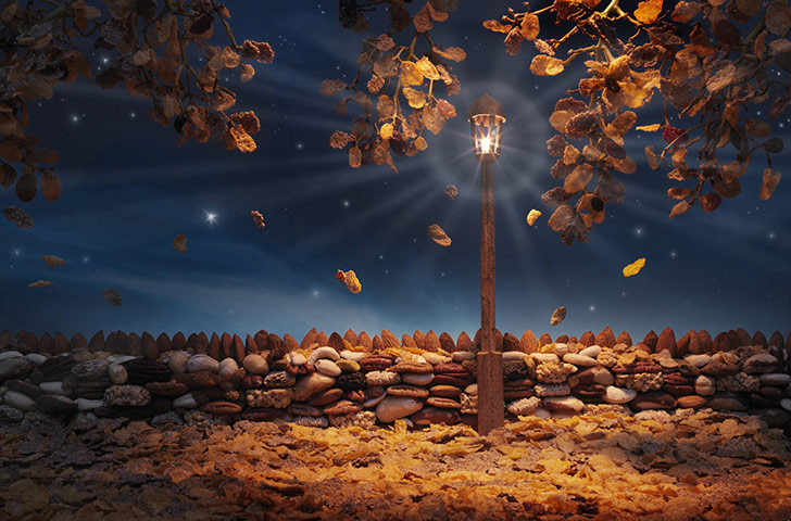 Từ các loại thực phẩm thông dụng như rau củ, bánh mỳ, sô cô la và thậm chí cả thịt, những phong cảnh mê hoặc, hoành tráng, vườn cổ tích lung linh, huyền bí tái hiện đầy sống động. Nào, hãy cùng thưởng thức tác phẩm nghệ thuật độc đáo này.