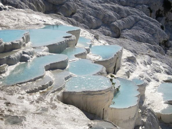 Pamukale – hay còn gọi là ‘lâu đài bông’, là tên của một kỳ quan thiên nhiên vô cùng hấp dẫn. Nó nằm tại tây nam của Thổ Nhĩ Kỳ. Điều khiến cho nó trở nên độc đáo là suối nước nóng có chứa rất nhiều khoáng chất.