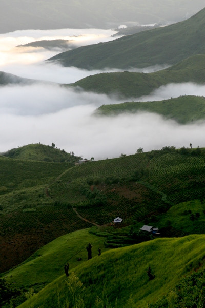 | Ngồi nhà sàn bên cánh đồng ruộng bậc thang tại Mường Nhé (Điện Biên). Ảnh: Minh Đức |
