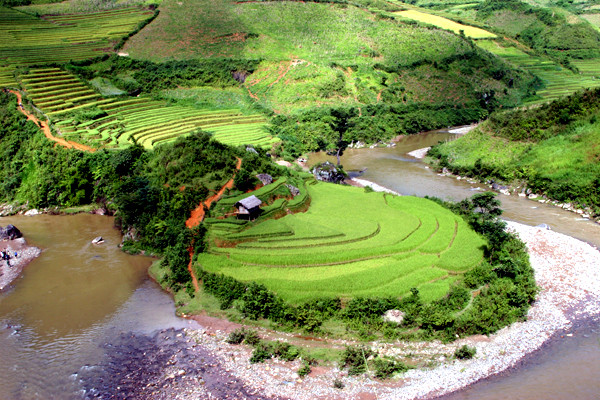 | Những thửa ruộng có những con sông con suối cắt ngang, uốn quanh. |