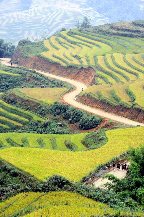 Tháng chín, tháng 10, khi lúa chín, những thảm màu vàng quét dài trên các vạt núi, tạo nên hàng trăm nghìn những con sóng nối tiếp nhau. Bức tranh đẹp mê hồn ấy như đưa con người vào chốn bồng lai tiên cảnh.
