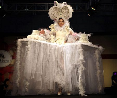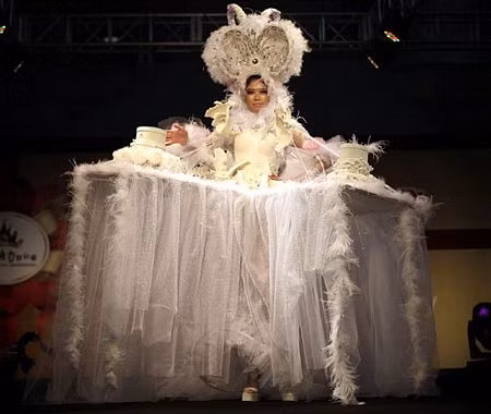 Tại đây, du khách còn được xem một buổi trình diễn thời trang với những bộ trang phục sử dụng nguyên liệu chính là sô – cô – la.