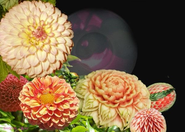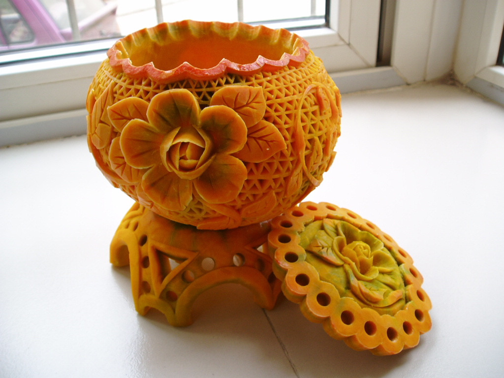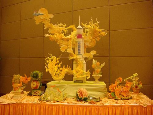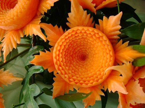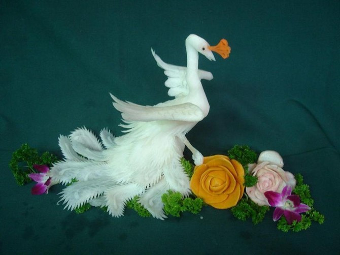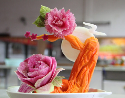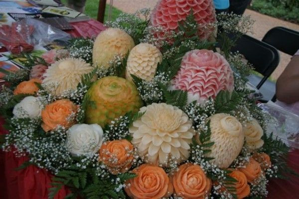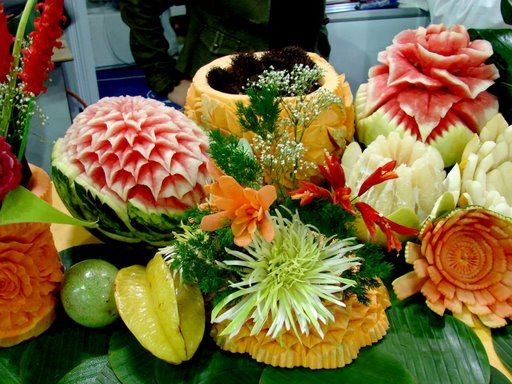 Ngắm nhìn những tác phẩm điêu khắc hoành tráng này, chắc ai cũng phải bàng hoàng sửng sốt khi biết được chúng được làm từ những quả bí đỏ, dưa hấu, cà rốt… Qua bàn tay điêu khắc khéo léo của các nghệ nhân chúng đã trở thành những tác phẩm nghệ thuật tuyệt đẹp.