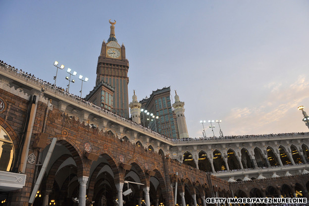Được tài trợ bởi Bộ tài nguyên tôn giáo Saudi, tòa nhà trị giá 15 tỷ USD đã trở thành một phần của cấu trúc Mecca, được hoàn tất với dòng chữ "Thiên Chúa là vĩ đại nhất" khắc trên đồng hồ. Cao 600m với 120 tầng, quần thể tháp đồng hồ bắt đầu từ năm 2004 và hoàn thành vào năm 2010.