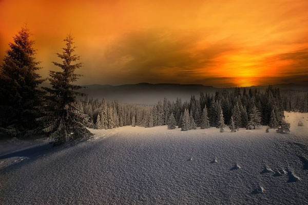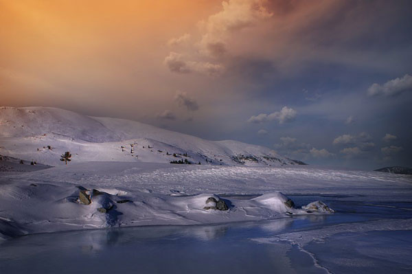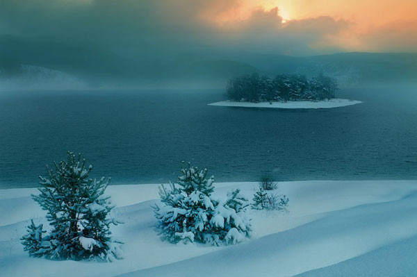 TPO - Vẻ đẹp băng giá của trời đông cũng khiến người xem xiêu lòng. Những mảng tuyết trắng lung linh, ánh chiều hoàng hôn vàng rực đổ xuống. Tất cả như một bức tranh huyền ảo, tuyệt đẹp về mùa đông.