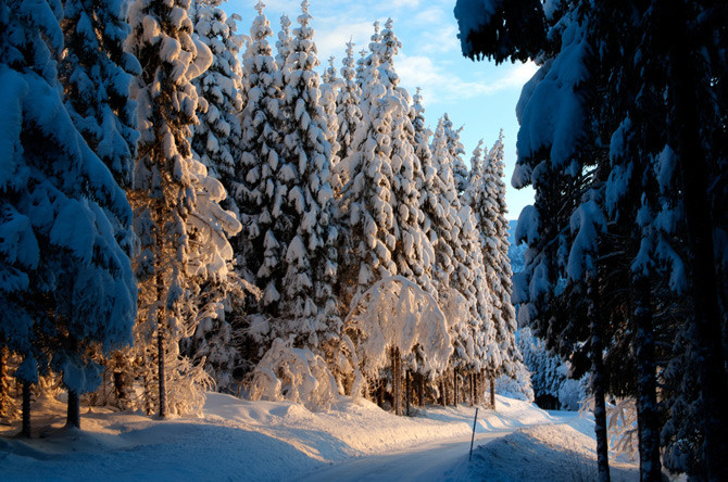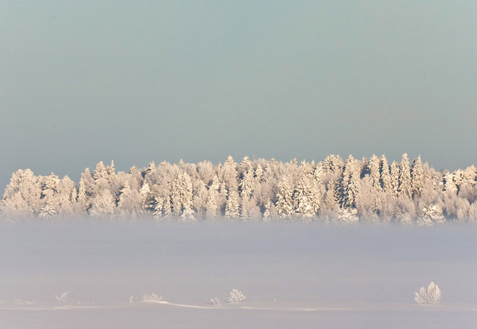 Tuyết phủ đầy một không gian trắng xóa trên cảnh vật sông núi, đồng cỏ, rừng cây... Tuyết rơi tạo nên những khung cảnh huyền ảo như trong truyện cổ tích. Sự tĩnh lặng, tinh khiết của màu trắng mùa đông vẽ nên những bức tranh tuyệt đẹp, đầy quyến rũ.