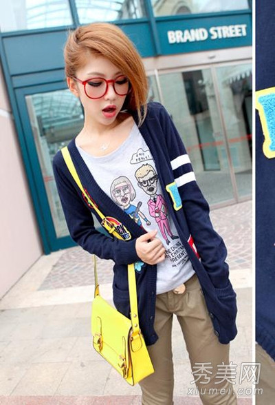 Để tạo sự phá cách về màu sắc, cũng vẫn với gọng kính màu đỏ bạn có thể kết hợp cùng áo cardigan hay áo jacket màu xanh navy và mang thêm một chiếc túi màu vàng tươi như thế này nữa. Như vậy bạn sẽ luôn nổi bật dưới trời thu.
