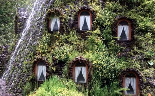 Khách sạn được thiết kế theo hướng thân thiện với môi trường, chủ yếu sử dụng gỗ của khu dân cư xung quanh. Từ sáng tới tối nước mát tinh khiết từ trên đỉnh bắn tung tóe trên cửa sổ phòng khách sạn làm mát không gian bên trong.